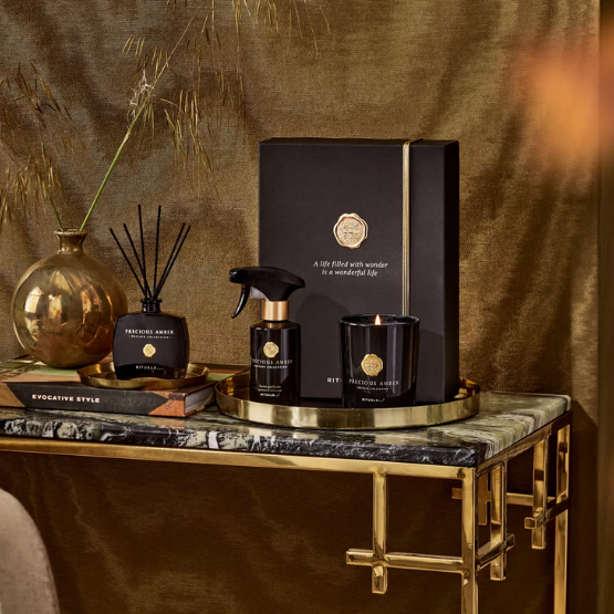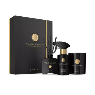Deze prachtige gift set is hét perfecte cadeau voor een vriend of familielid, of gewoon om jezelf te trakteren! De Precious Amber gift set bestaat uit een selectie van onze mooiste Rich producten uit de Private Collection; een geurkaars, mini geurstokjes en interieurparfum. Het aroma is opgebouwd uit de geur van jeneverbes en frisse kardemom. De kruidige hartnoten zijn vermengd met weelderige ylang ylang, en worden afgerond door de noten van patchouli, vetiver en rijke amber. Creëer in elke ruimte een ontspannen en persoonlijke sfeer om prachtige herinneringen in te maken. Geef de gift box na gebruik een nieuw leven als een opbergdoos voor foto’s, brieven, of andere spulletjes. Met herbruikbare luxe box.