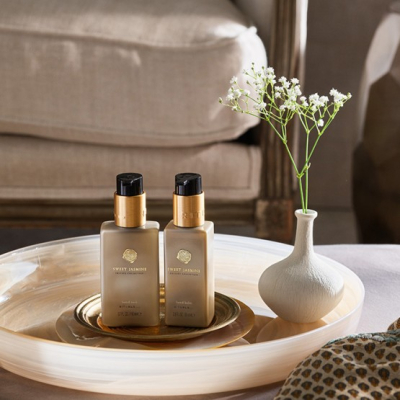 Deze luxe balsem, met een heerlijke geur van jasmijn, begint met een frisse citrus- en bessengeur en gaat over in elegante bloemige tonen zoals pioenroos en lelietje-van-dalen. De toevoeging van sandelhout geeft een vleugje elegantie en warmte aan de geur.